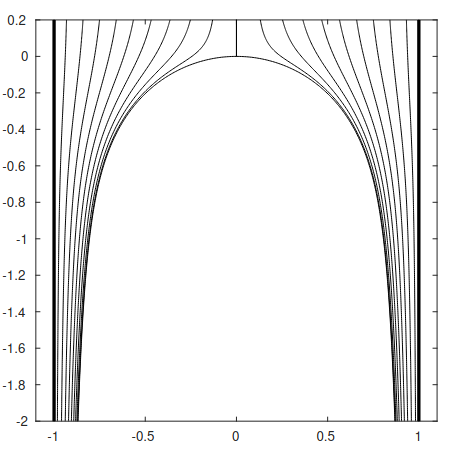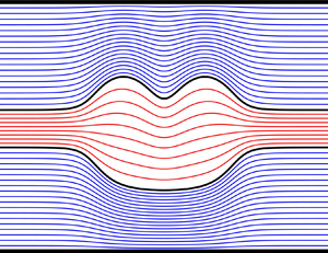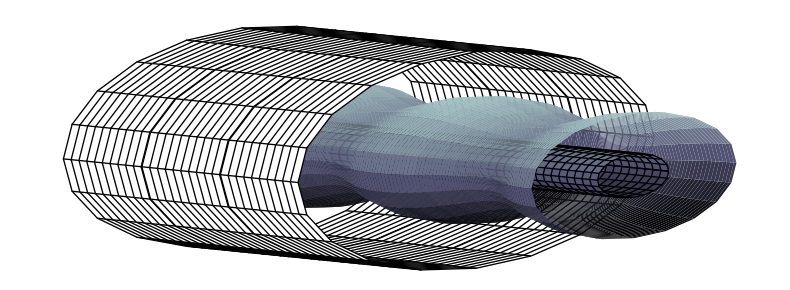 During my PhD at UCL, working with my supervisor Jean-Marc Vanden-Broeck, we found numerical solutions to axismmetric potential flow problems. We explored solution selection of Taylor bubbles, and waves on a ferrofluid jet. In both cases, a hodograph transformation was used to solve the steady-state flow in the potential space. The Stokes’ streamfunction, unlike the streamfunction for classical two-dimesional potential flow, does not satisfy the Laplace equation. Hence, tricks from complex analysis must be replaced with other methodologies. For this purpose, we solve the flow equation in the potential space with finite differences, using a classical trick by Woods called ‘function splitting’ to handle boundary singularities.